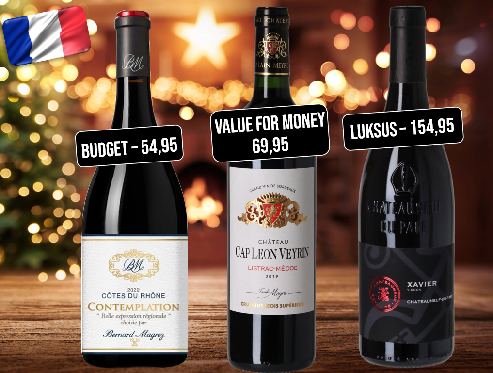 Julevine i 3 forskellige prisklasser